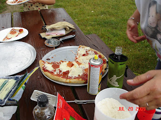 Our family is known for great cooking so Pam came thru again with her homemade pizza. You say, what so special about that- well she cooked it over a wood fire.